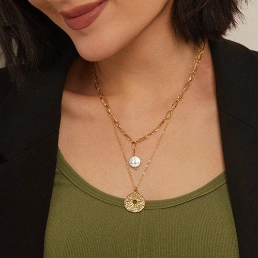 Layered Coin Pearl Necklace