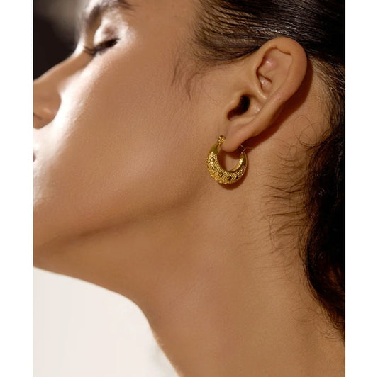 Sold outCaved Crescent Hoop Earrings
