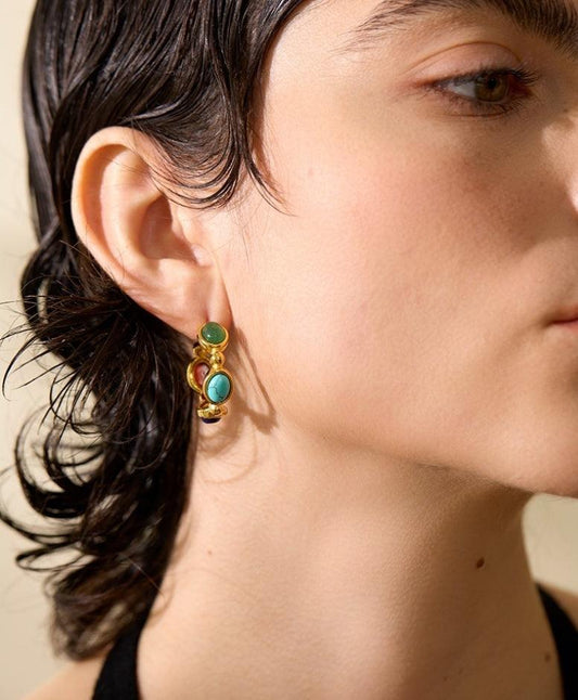 Multicolor Stone Hoop Earrings